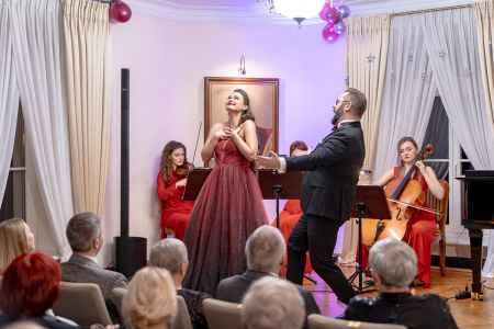 3 stycznia 2026 roku daliśmy nasz pierwszy koncert w nowym roku w miejscu prawdziwie magicznym - w Ośrodku Chopinowskim w Szafarni. Scena pozwalała jedynie na bardzo kameralny skład, ale zrobiliśmy wszystko, aby zrobić wrażenie co najmniej jak na koncercie symfonicznym! Szczególnie, że zaprosiliśmy dwoje fantastycznych solistów - Justynę Gęsicką oraz Kamila Pękalę - którzy zaprezentowali swoje talenty w wielu różnorodnych gatunkach, pojawiły się przecież kompozycje operowe, operetkowe, ale także utwory musicalowe czy przebojowe pieśni neapolitańskie. Zresztą nasza szanowna publiczność dała się ponieść zabawie, zachęcona przez Emilię Czekałę i przez cały koncert fundowała nam owacyjne oklaski, a nawet wcieliła się we wspaniały, neapolitański chór! Nastroje panowały iście szampańskie, mimo że sam szampan wniesiony został pod koniec koncertu, a wszystko zakończyło się wspólnym śpiewem przy kolorowym confetti!