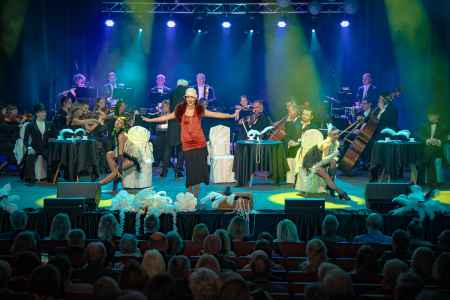 11 marca 2025 roku wystąpiliśmy w Nakle nad Notecią, by uczcić Dzień Kobiet piosenkami jednej z najwspanialszych dam polskiej sceny - Marii Koterbskiej. Tego dnia sala Nakielskiego Ośrodka Kultury wypełniła się po brzegi roześmianą, rozśpiewaną, rozbujaną publicznością! Zabrzmiały wielkie przeboje i mniej znane piosenki Koterbskiej w rewelacyjnych aranżacjach Marka Czekały, który oczywiście dyrygował także naszą orkiestrą. "Do grającej szafy grosik wrzuć", "Augustowskie noce", "Si senior", ale też "Karuzela" i "Parasolki" wykonane zostały osobno i razem przez trzy utalentowane wokalistki: Dominikę Kasprzycką-Gałczyńską, Adelę Konop i Emilię Czekałę, która dodatkowo opowiadała o Marii Koterbskiej przedstawiając mniej lub bardziej znane fakty z życia tej wielkiej gwiazdy lat 50-tych. Pozytywna energia słuchaczy i gromkie brawa to najpiękniejsza nagroda jaką mogliśmy sobie wymarzyć, utwierdza nas to w przekonaniu, że warto tworzyć takie programy przypominające melodie dawnych lat, warto walczyć, by ocalić je od zapomnienia!