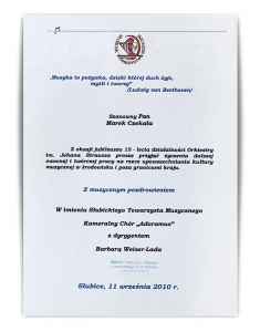 Poniżej prezentujemy Państwu wybrane fragmenty recenzji, zaś u dołu strony znaleźć można pisma, podziękowania oraz słowa uznania od naszych słuchaczy, klientów oraz przyjaciół z którymi współpracujemy. Dowodzą one, że każdy nasz koncert to prawdziwa uczta dla ducha!