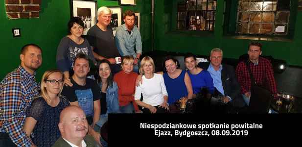 Oprócz wielu powitań koncertowych, zafundowaliśmy naszemu zalożycielowi także nieformalne powitalne spotkanie niespodziankę - zwabiony podstępem do klubu Eljazz mocno się zdziwił, gdy zobaczył poszczególnych muzyków naszej orkiestry, którzy odśpiewali mu "sto lat" i od których w ramach powitania otrzymał symboliczne bydgoskie prezenty: kubek i kawę. Nie zabrakło śmiechu, wspomnień i czystej radości ze wzajemnego towarzystwa! Mamy nadzieję, że ta atmosfera i przyjaźń odczuwalne są także podczas naszych koncertów!