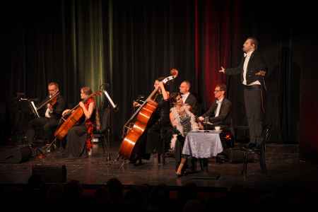 9 października 2025 roku Cafe Bodo zawitało do Chojnic - była to sentymentalna podróż nie tylko ze względu na tematykę spektaklu, ale także na fakt, że to właśnie w Chojnicach 9 lat wcześniej spektakl ten miał swoją premierę! Od tego czasu wykonaliśmy go już kilkadziesiąt razy w całej Polsce, Tadeusz Seibert śpiewa głosem Eugeniusza Bodo, a Emilia Czekała wciela się w Hankę Ordonównę z pełną swobodą, Marek Czekała dołącza do tańca, ale publiczność jest równie ubawiona co podczas premiery, a to bardzo nas cieszy! Koncert miał miejsce w ramach obchodów 750-lecia Chojnic, a że jest to dla orkiestry bardzo ważne miasto, stanowi to dla nas ogromną satysfakcję i radość, że mogliśy wziąć udział we wspólnym świętowaniu!